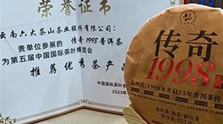 傳奇1998榮獲第五屆中國國際茶葉博覽會“推薦優(yōu)秀茶產品”!